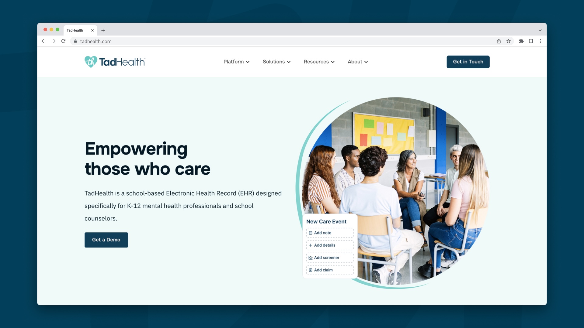 TadHealth was at a pivotal point of growth and sought a refreshed brand identity that could better express the care, trust, and support it provides to students and school communities. The goal was to evolve the brand in a way that would resonate with a wide range of audiences, including students, parents, educators, and administrators, while staying true to its core mission and values.